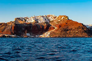 La navigation dans les eaux de la caldeira de Santorin est saisissante. Le gigantisme de ce décor unique, la majesté des hautes falaises entourant cet ancien cratère envahi par les flots au IIe millénaire avant J.-C. est un moment fort de la croisière. Depuis votre navire, les dégradés de couleur des roches volcaniques, blanches, grises, rouges, le bleu de la mer Égée, les villages perchés immaculés constituent un spectacle unique et merveilleux.